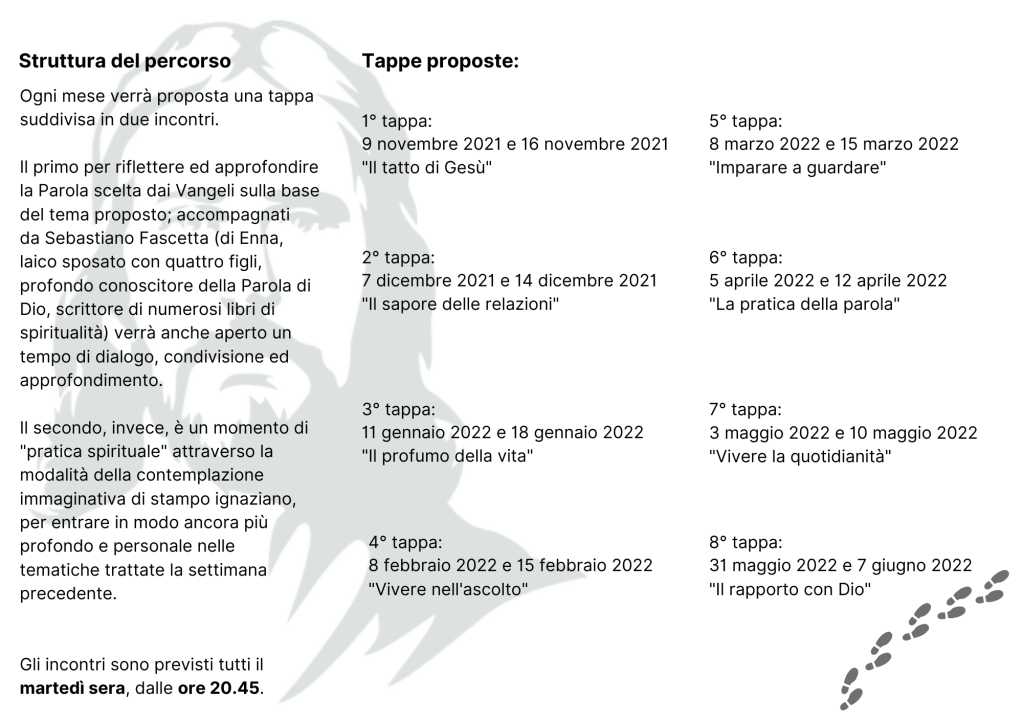 Ogni mese verrà proposta una tappa suddivisa in due incontri.