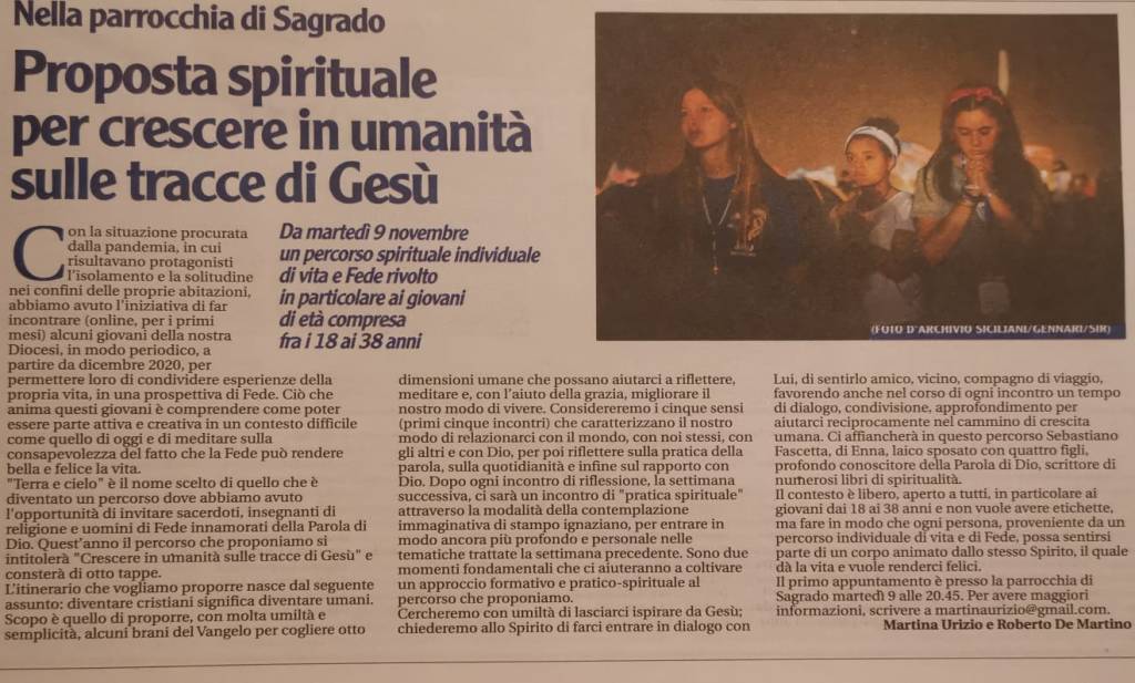 Il primo per riflettere ed approfondire la Parola scelta dai Vangeli sulla base del tema proposto; accompagnati da Sebastiano Fascetta (di Enna, laico sposato con quattro figli, profondo conoscitore della Parola di Dio, scrittore di numerosi libri di spiritualità) verrà anche aperto un tempo di dialogo, condivisione ed approfondimento.